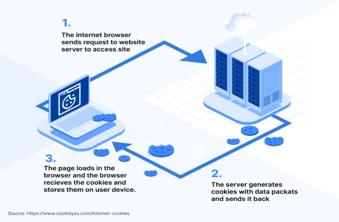 Before getting into the details of testing cookies, it’s important to to understand how cookies work. Cookies are small text files stored on a user’s device by a website or web application. They contain data that can help the website recognize users, track their activity, and customize the browsing experience. The image below perfectly summarizes how cookies actually works.