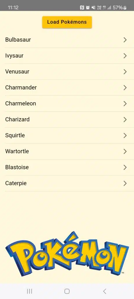 For the examples in this blog, we are going to build an app that uses the PokéApi to get a list of 10 Pokémon to display.