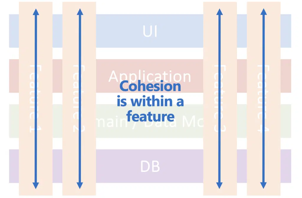As features evolve, shared code tends to proliferate across the layers. This increases the coupling between different features, making it challenging to change or extend one feature without risking side effects in another. For instance, a simple change in a business rule might require adjustments in multiple places, leading to a higher risk of bugs and increased testing effort.