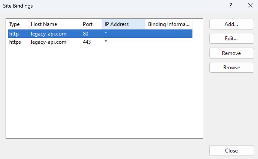 Because you will never be able to access your VM by localhost, you need to edit the binding of your website to a domain name of your choosing. Later we will configure macOS to translate the custom domain name into the IP of your VM.