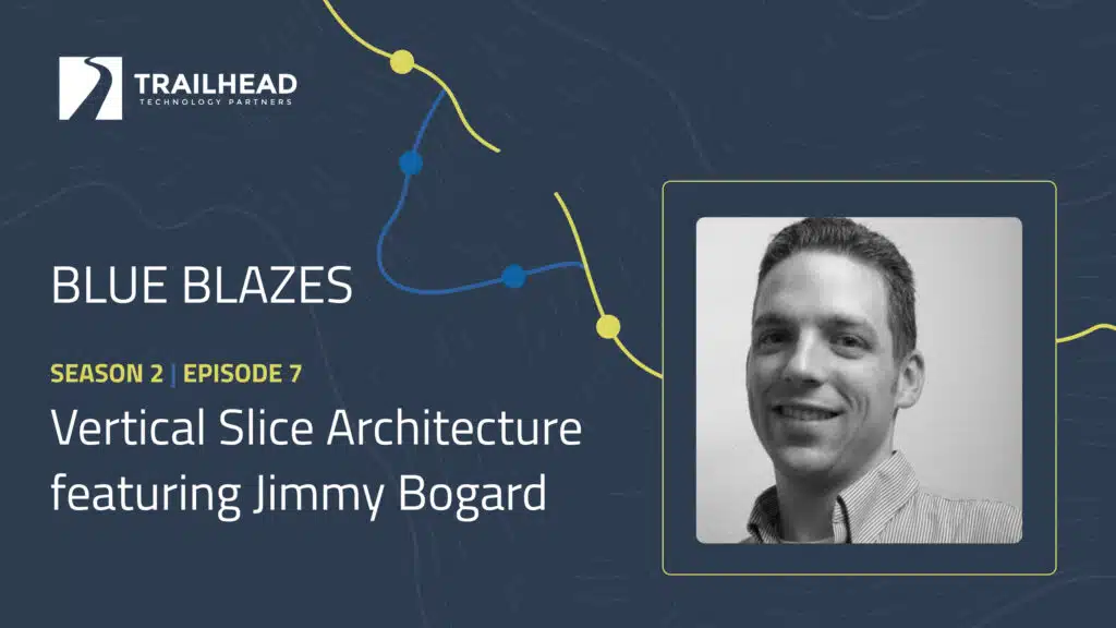 In this episode of Blue Blazes, host Jonathan “J.” Tower speaks with Jimmy Bogard about vertical slice architecture (VSA), and how using it in your software projects can help make them more predictably successful. We delve into how VSA organizes your code by feature, allowing you to more easily and reliably make the most common type of changes to your application.