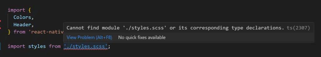 You may get an error while importing the style like “Cannot find module ‘./styles.scss’ of its corresponding type declarations.”: