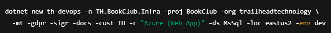 Once your code is scaffolded, you probably need cloud infrastructure to run it. The Trailhead Framework™ also ships with a th-devops template that generates a complete Terraform codebase—ready to deploy to Azure (or other clouds) and hook into Azure DevOps or GitHub projects and pipelines.