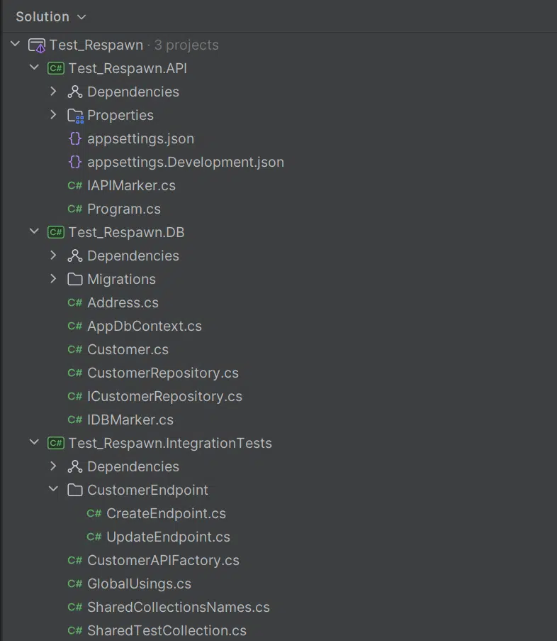 I have created a simple API project featuring a Customer Entity and CustomerEndpoint (minimal API) that interacts with the database. Additionally, I have implemented a database layer with a repository pattern, which you might find in your typical project.